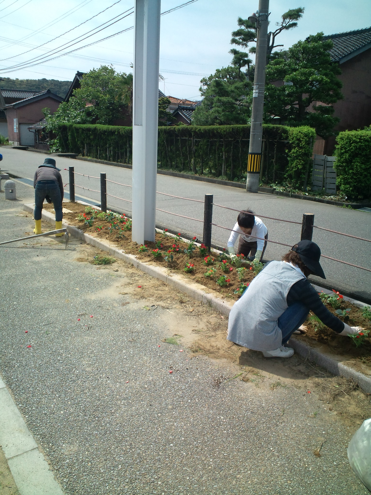 6月24日9時から、金市町・ニュー金市・金市団地町会の合同で、やすらぎ公園の花植および除草作業を行いました。ご協力いただきました3町会の皆様、お疲れ様でした。きれいになった公園を皆さんで楽しんでください。