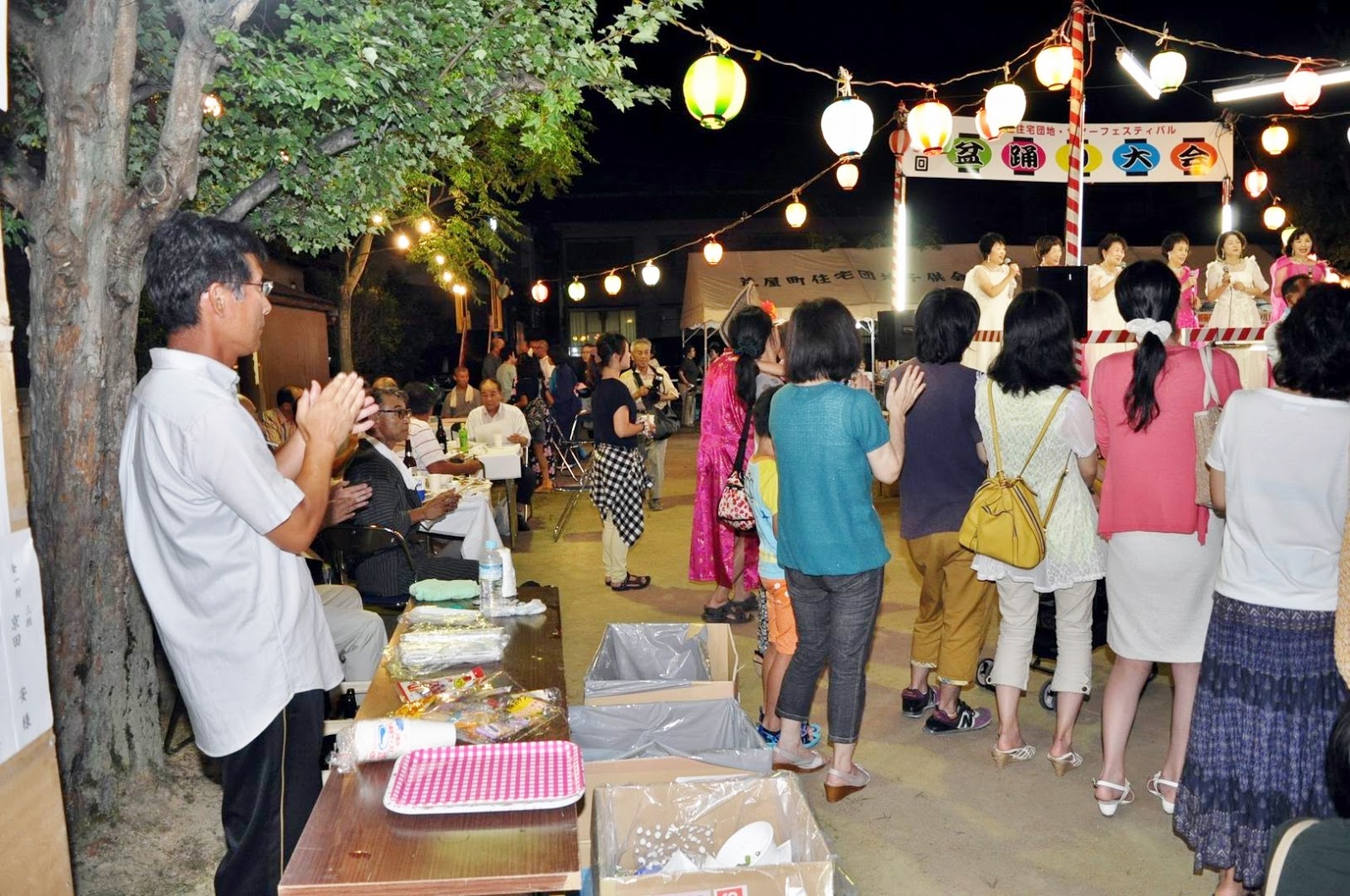 | 大勢の人達が夏の終わりの踊りを楽しんだ |