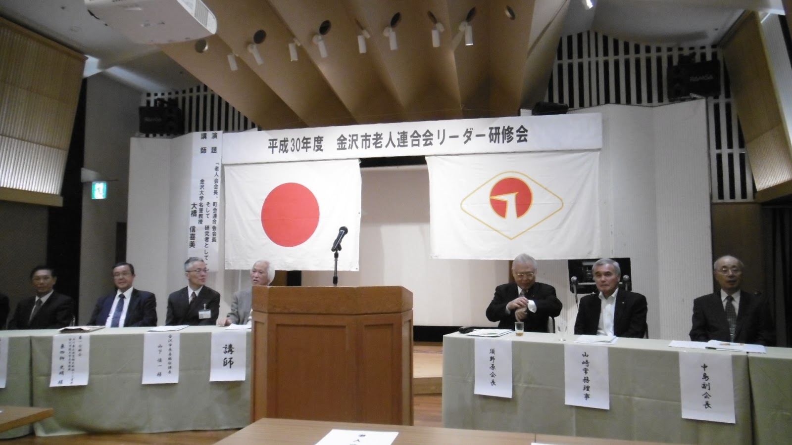 金沢市老人会連合会のリーダー研修会が9月14日開催されました。この基調講演の後は、各分会に分かれてのテーマ・講師として。「おたすけ隊の誕生から未来展望」と題して、千坂地区社会福祉協議会おたすけ隊 隊長 中山良一さん(荒屋団地町会 町会長)が講師をされました。