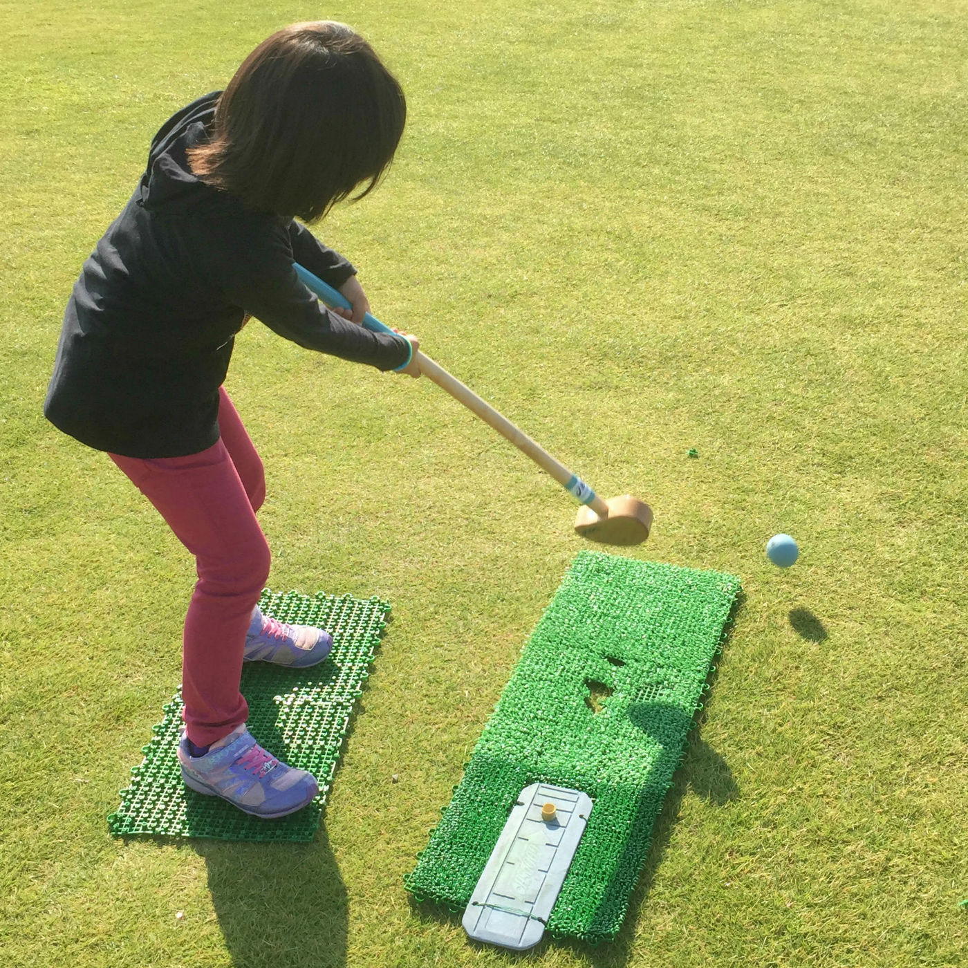 大人35名(男16名、女19名)、子供8名の計43名が参加し、晴れ渡る秋空の下、ホールインワン目指してプレイ。