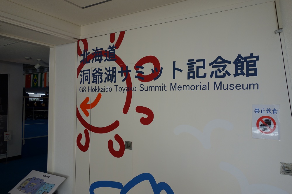 洞爺湖サミットに参加したG8各国と首脳を紹介。記念撮影可能なG8首脳写真パネルも設置されている。